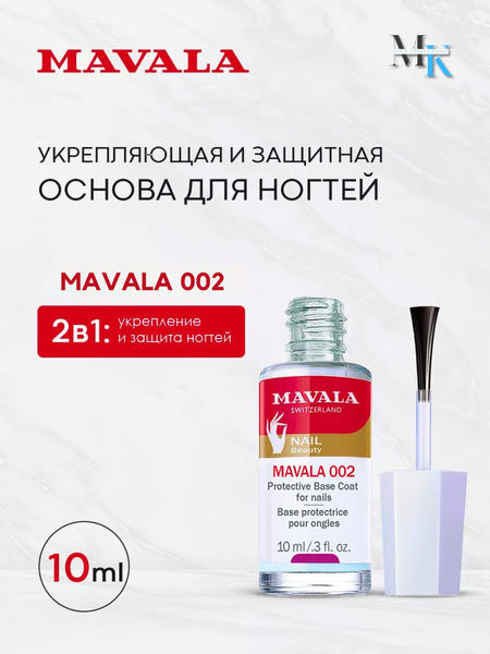 Дополнительные рекламные тексты: ✨ «Красивый маникюр начинается со здоровых ногтей!» «Ухаживайте за ногтями даже под лаком — с Mavala 002!» «Первый шаг к крепким, гладким и здоровым ногтям!» «Самая рекомендуемая база среди женщин!» «Перед нанесением лака — надёжная защита с Mavala 002!»
