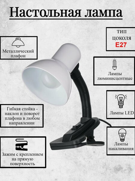 Выключатель на основании светильника, Регулируемая ножка, Удобное крепление с помощью прищепки, гибкий