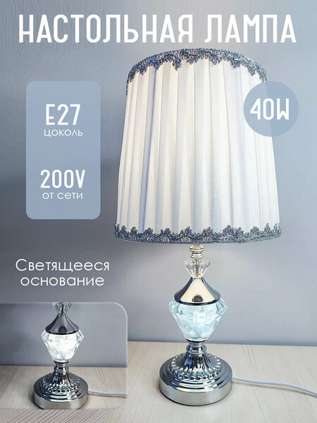 Лампа прикроватная с абажуром от бренда Baizheng Этот стильный настольный светильник от Baizheng – идеальный выбор для создания уютной и современной обстановки в вашем доме. Серебристый цвет корпуса и белый абажур из ткани с декоративным кантом придают изделию лёгкий и свежий вид, а серебристая ножка добавляет элегантности и строгости. Два удобных выключателя на проводе позволяет легко управлять освещением на самом плафоне и отдельно на включать свет корпусе . Цоколь типа Е27 подходит для любой лампочки, что даёт возможность выбрать оптимальный уровень яркости света. Габариты светильника (общая высота 43 см, длина провода 115 см) делают его удобным для размещения на рабочем столе, прикроватной тумбе или в любом другом месте, где требуется дополнительное освещение. Диаметр верхней части абажура составляет 17 см, а нижней – 25 см, при высоте абажура 20 см. Этот светильник не только обеспечит вас качественным светом, но и станет ярким акцентом в интерьере, подчёркивая вашу индивидуальность и чувство стиля.