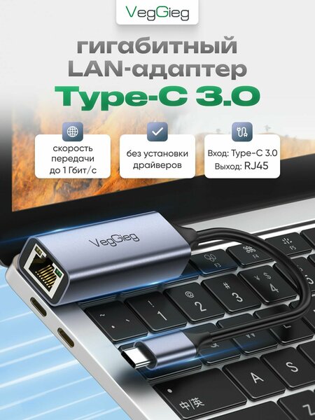 LAN-адаптер Type-C 3.0 VegGieg — надёжное решение для подключения к проводному интернету через Type-C 3.0. Обеспечивает стабильное соединение со скоростью до 1000 Мбит/с благодаря чипу RTL-8153 и разъёму RJ45. Plug & Play – не требует установки драйверов Светодиодный индикатор активности для контроля подключения интернет хаб Внешняя сетевая карта совместима с большинством устройств, имеющих разъем Type-C 3.0 Идеально подходит как переходник type c ethernet, удобен в поездках и дома. Эта сетевая карта type c станет незаменимым помощником, если у вас нет встроенного LAN порта. Практичный выбор для тех, кто ищет качественный переходник lan type c, сетевой адаптер ethernet type c, переходник lan, переходник ethernet type c, хаб интернет или type c rj45. Подключил — и в интернет! Быстро, просто и надёжно с переходником ethernet type c!