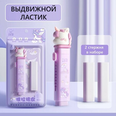 Ластик-карандаш выдвижной, поставляется в наборе, который состоит из стильного пластикового корпуса, оснащенного выдвижным механизмом и 2 сменных резиновых стержня.