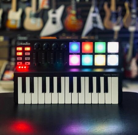 8 назначаемых пэдов с чувствительностью к нажатию, установка минимального и максимального значений. 4 назначаемых регулятора, установка минимального и максимального значений. 4 назначаемых фейдера, установка минимального и максимального значений. 25-клавишная мини-клавиатура с чувствительностью к нажатию и возможностью назначения контроллеров, 3 кривые чувствительности, 1 постоянная. 4 банка памяти для различных настроек. Октава + \ - (9 шагов), транспонирование. Высота + \ -, модуляция. Настройка отдельных каналов. Совместимость с Windows 10/8/7 / XP / Vista и Mac OSX. Работа без установки драйверов.