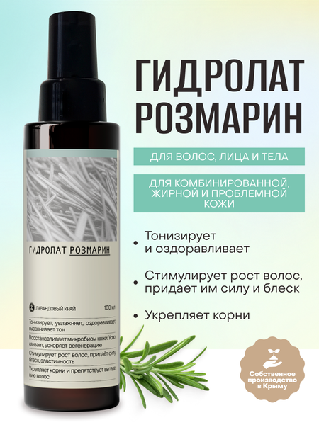 Лавандовый край, Гидролат Розмарин от высыпаний, для всех типов кожи, 100 мл