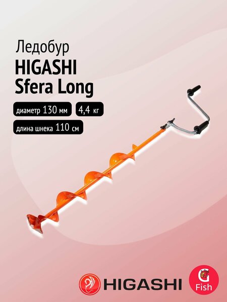 Телескопический ледобур Higashi Sfera Long 130 с удлиненным шнеком, складывающейся рукоятью и сферическими ножами. Большее количество витков на шнеке позволяет бурить быстрее, а телескопическая ручка помогает увеличить глубину бурения льда. Длина шнека 1100 мм. Подходит для использования в тандеме с шуруповертом. Для этого понадобится удлинитель для ледобура Higashi (в комплект не входит). Ножи в комплекте.