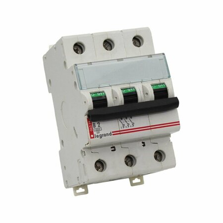 Трехполюсный автоматический выключатель 06278. Имеет кривую отключения В, номинальный ток 2А. Обеспечивает номинальную отключающую способность 6 кА.
