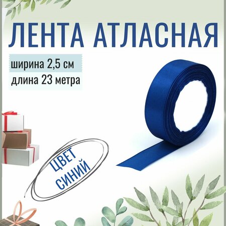 Лента атласная 2,5см х 23м синяя, упаковочная для рукоделия, для декора и творчества, шитья, упаковки и оформления подарков, 25мм
