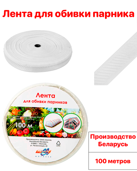 Достоинства:Белорусская лента достаточной длины, на дугу теплицы сечением 20х20 ширина ленты достаточная, цена нормальная; использовал для крепления пленки "СВЕТЛИЦА" на каркас теплицы с дугами сечением 20х20 (для подстраховки), в рекламе уверяют, что "СВЕТЛИЦА" при обычном креплении простоит не менее 7 лет.