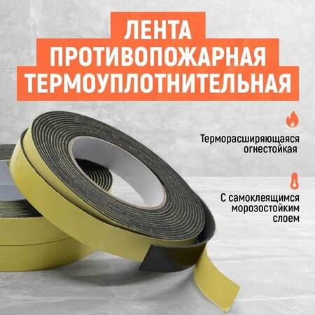 Лента противопожарная термоуплотнительная разработана совместно с производителями противопожарных преград (дверей противопожарных, ворот, люков, противопожарных окон). Самоклеящийся слой имеет климатическое исполнение УХЛ1 (для районов с умеренным и холодным климатом). Данное исполнение позволяет осуществлять монтаж ленты противопожарной даже в неотапливаемых производственных цехах в зимнее время, а так-же использовать для уличных противопожарных дверей и ворот. После монтажа на готовые конструкции допускается окраска ленты или нанесение другого декоративного покрытия. Принцип действия В момент возникновения очага возгорания (при температуре от +150°С) термоактивные компоненты начинают многократно расширять ленту , тем самым заполняя зазоры между полотном и коробкой противопожарной двери, или другой противопожарной конструкции. Лента препятствует распространению огня и продуктов горения в другие помещения. Область применения Рекомендована при производстве противопожарных преград с газо-дымозащитными свойствами и пределом огнестойкости EI60, EI90. Лента противопожарная термоуплотнительная с самоклеящимся морозостойким слоем предназначена для герметизации зазоров в противопожарных преградах (дверей противопожарных, ворот, люков, окон противопожарных, систем вентиляции, клапанов противодымных). упаковка рулон – 20 метров.