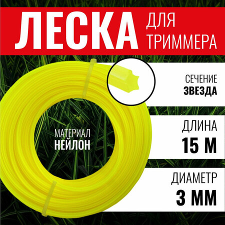 Леска для триммера 3,5 мм, корд для триммера, сечение звезда, 15 м