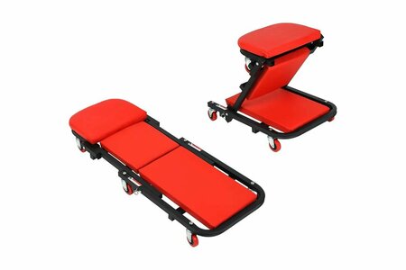Лежак подкатной трансформер Great Wolf GWA117A Лежак подкатной трансформер используется для доступа к узлам механизма автомобиля без использования подъемника или эстакады. Универсальная конструкция лежака позволяет закреплять спинку в наклонном положении или трансформировать в стул. Технические характеристики Max нагрузка 150 кг Длина рабочей части 1020 мм Ширина рабочей части 400 мм Высота 100 мм Колеса есть