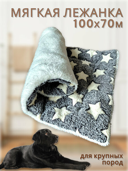 Мягкая лежанка размером 100х70 см отлично подойдёт для собак средних и крупных пород. Лежанка мягкая, но не объёмная, в свёрнутом состоянии не займёт много места и это позволяет брать её с собой в путешествия с любимым питомцем, в гости или на дачу. Лежанки можно разместить на сиденье машины или на диване, что поможет защитить поверхность от загрязнения во время линьки животного. Удобно использовать как коврик или как одеялко для собаки со щенками или кошки с котятами. За лежанкой легко ухаживать, можно чистить или стирать в машинке в режиме подходящем для деликатных тканей.