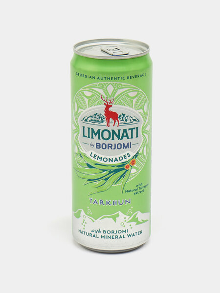 Лимонад Borjomi Can Тархун, 330 мл — освежающий газированный напиток с травяным вкусом Лимонад Borjomi Can Тархун — это уникальный газированный безалкогольный напиток с насыщенным вкусом тархуна в удобной банке объёмом 330 мл. Напиток сочетает сочную сладость и лёгкую травянистую свежесть, создавая необычный и яркий вкус, который станет отличным выбором для отдыха, пикника или повседневного употребления. Основные преимущества: Яркий аромат и вкус тархуна — классическое сочетание сладости и травянистых нот; Освежающая газированная текстура, идеально подходит для утоления жажды; Компактная банка 330 мл — удобно брать с собой в дорогу, на прогулку или в офис. О продукте: Лимонад приготовлен на основе природной питьевой и минеральной воды Borjomi, сахара, концентрированных соков (например, яблочного и лимонного) и экстракта тархуна — травы с характерным свежим вкусом и ароматом. Напиток обладает лёгким травяным оттенком, насыщенным