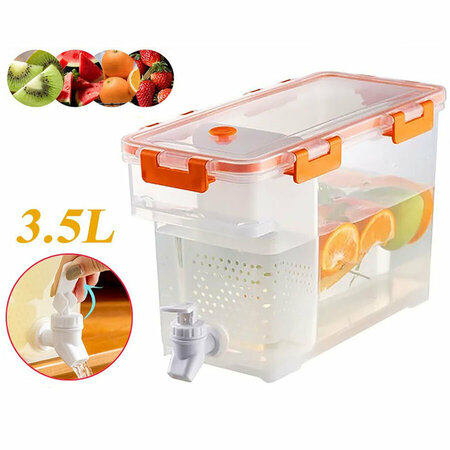 Лимонадница с фильтром 3.5 литра идеально подходит для приготовления летних, прохладительных напитков дома и на даче. Можно заполнить диспенсер лимонадом, соком, водой, квасом, чаем и многим другим. Встроенная в лимонадницу подставка, позволит удобно разместить ее не только на столе, но и на других ровных поверхностях. Пластик диспенсера не впитывает в себя запахи и полностью безопасен для применения, а компактный размер позволяет легко расположить лимонадницу на полке холодильника. Кран диспенсера имеет 2 силиконовых уплотнительных кольца, что позволяет не беспокоится о протечках. Помимо фильтра на кране, в диспенсер устанавливается дополнительная фильтровальная перегородка в саму чашу лимонадницы. Этот фильтр не позволяет забиваться крану и не препятствует наливу напитка. Характеристики: Объем: 3.5 литра Материал: пищевой пластик