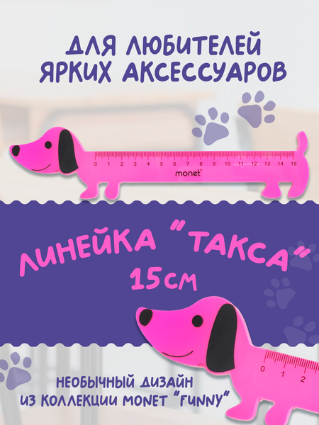 Линейка пластиковая Monet "Такса", пластик, 15 см, розовая, гибкая