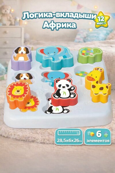 Вкладыши - простая и увлекательная логическая игра для малыша. Изучам формы, узнаем животных, простейшие, но такие значимые действия для развития. Растем и развиваемся вместе. Подходит для детей от 12 месяцев. размер 28,5х6х26 см.
