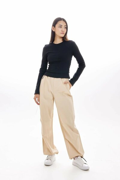 Базовый лонгслив полуприлегающего кроя с блестящей шнуровкой из страз на спине. Выполнен из приятного к телу рубчатого материала. Идеально впишется в образ любого стиля от офисного до уличного.