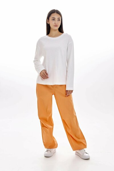 Приятный базовый лонгслив. Имеет круглый вырез и спущенную линию плеча с широкими рукавами. Модель станет лаконичным элементом образа для прогулки или отдыха.