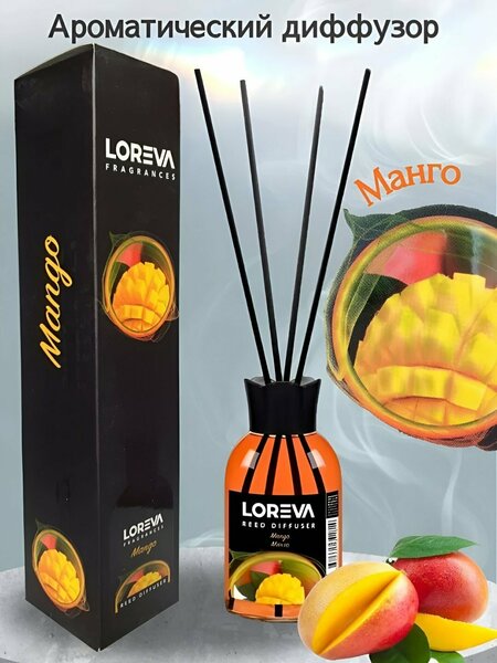 "LOREVA" "Mango" 110 мл. Диффузор с палочками для воздуха дома, автомобиля и офиса, с ароматом манго,