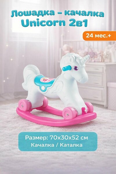 Лошадка-качалка Единорог DOLU создана для маленьких принцесс! Конструкция 2в1 позволяет использовать и как качалку, и как каталку - отталкиваться ножками. Развивает и физическую активность и вестибулярный аппарат. Размер в собранном виде 70х30х52 см. Подходит для детей от 24 месяцев.