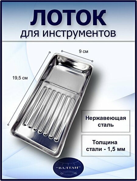 Лоток для инструментов Дента-М - это надежный и функциональный аксессуар для стоматологических кабинетов и других медицинских учреждений. Изготовлен из нержавеющей стали высокой прочности, толщиной 1,5 мм, что обеспечивает долговечность и устойчивость к коррозии. Благодаря этому, лоток не ржавеет и не тускнеет после многочисленных стерилизаций любых видов. Лоток вмещает до 8 инструментов, что позволяет удобно организовать рабочее пространство и поддерживать порядок. Компактные размеры лотка не занимают много места, что особенно актуально для небольших кабинетов. Серебристый цвет лотка придает ему эстетический вид и гармонично вписывается в любой интерьер. Таким образом, лоток для инструментов Дента-М является отличным выбором для тех, кто ценит качество, функциональность и удобство.