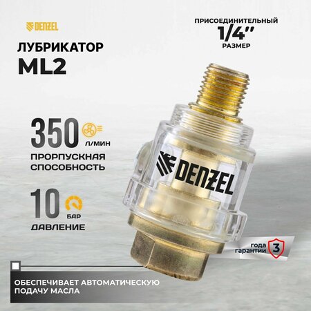 Лубрикатор Denzel ML2 57003 с рабочим давлением 10 бар и присоединительным размером 1/4" имеет пропускную способность 350 л/мин и обеспечивает поступление смазки в пневматическую систему. Предотвращает преждевременный износ и поломку рабочих деталей пневмоинструмента: гайковерта, дрели, молотка и т. д. Прочность — аксессуар выполнен из стали и рассчитан на длительное использование. Экономия времени на обслуживание пневмоинструмента — лубрикатор обеспечивает автоматическую подачу масла. Компактность и малый вес 90 г — портативный лубрикатор устанавливается на входе пневмоинструмента и не создает неудобств во время работы.