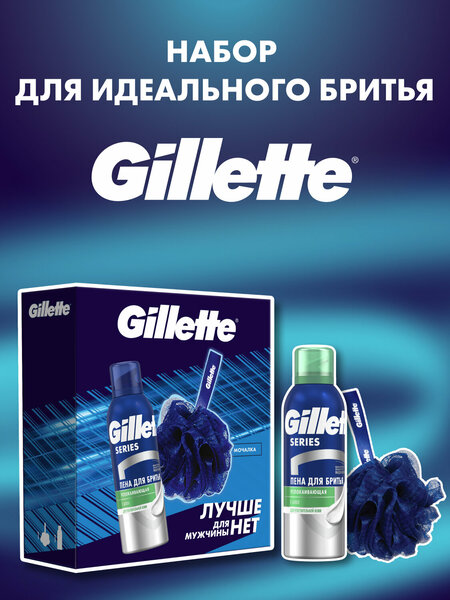 Мужской набор Gillette с успокаивающей пеной Gillette Series 200мл и мочалкой