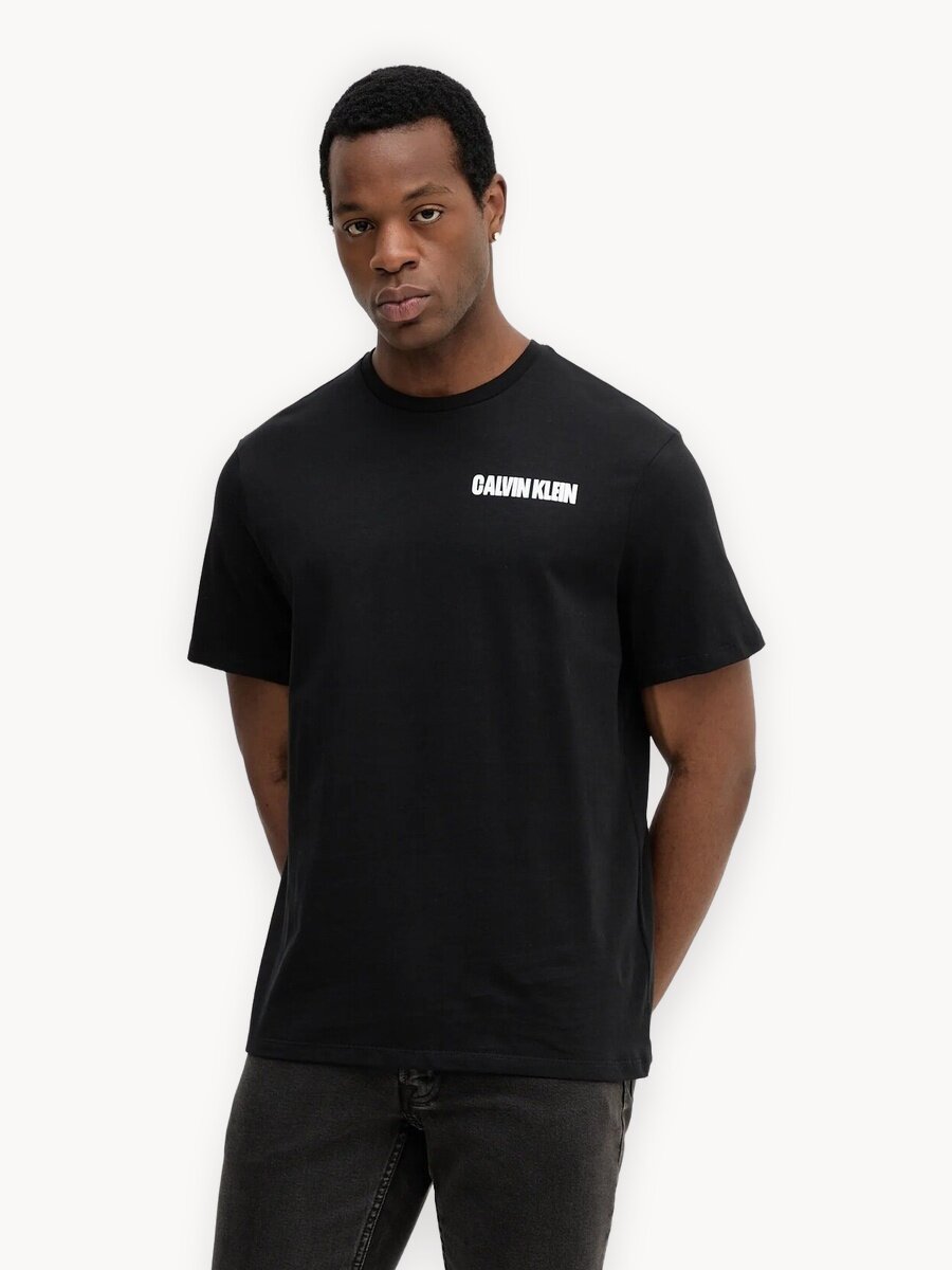 Чёрная мужская футболка Calvin Klein Jeans выполнена в простом, но стильном фасоне, который не стесняет движений. Такой крой делает футболку удобной для повседневной носки и активного образа жизни.