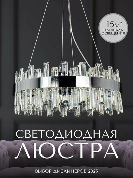 Откройте двери в мир изысканного света с нашей потолочной светодиодной люстрой, которая преобразит ваше пространство, добавляя ему шарма и утончённости. Этот уникальный светильник на потолок, выполненный из граненого прозрачного стекла, создаёт иллюзию дорогостоящего хрусталя, придавая каждой комнате ощущение роскоши и эксклюзивности. Каждая деталь этой подвесной люстры была тщательно продумана для сочетания функциональности и стиля. С металлическим основанием, окрашенным в элегантный цвет серебра, и круглой формой диаметром 45 см, она идеально впишется в любой интерьер от классики до лофта. Конечно же, особенностью модели является возможность регулировки высоты до 90 см, что позволяет адаптировать освещение под любой запрос и интерьер. Наша регулирующаяся стеклянная люстра станет идеальным выбором не только для освещения спальни, гостиной, кабинета или прихожей, но и добавит изысканности в коридор, кухню или зал. Современный дизайн, высочайшее качество материалов и универсальность использования делают её незаменимым элементом в доме, где ценятся красота и функциональность. Создайте уют и уютную атмосферу с нашей люстрой, и пусть каждый момент в вашем доме становится особенным.