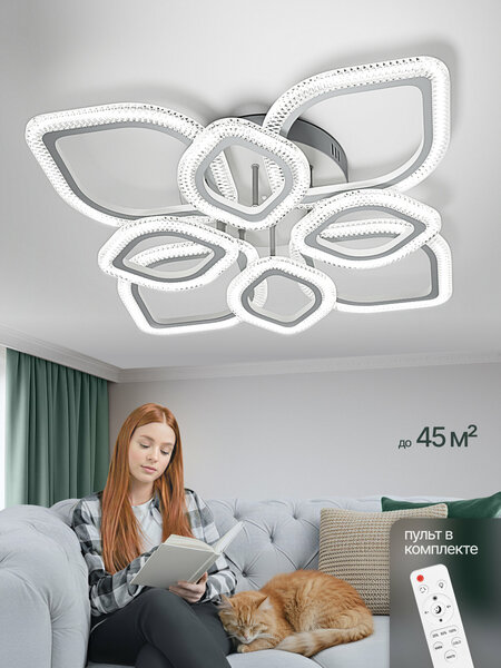 Люстра потолочная Ritter — это надёжный источник яркого освещения для гостиной, зала или спальни. Люстра диаметром 68 см и мощностью 224 Вт идеальна для комнат до 45 кв. м. яркая Встроенные светодиоды обеспечивают интенсивный и равномерный свет, который подходит как для отдыха, так и для работы. управляемая Переключение режимов цветовой температуры — тёплый/нейтральный/холодный/ночник — осуществляется как с помощью стандартного настенного выключателя, так и с пульта. К люстре потолочной можно подключить несколько пультов управления, а также обеспечить наличие запасного пульта. Подходящий пульт дистанционного управления можно приобрести по арт. 103519184482. универсальная В выключенном состоянии корпус и плафоны люстры белого цвета, благодаря чему она легко вписывается в любой интерьер. тонкая Высота люстры всего 12 см, она выглядит аккуратно и минималистично - идеально подходит для комнат с невысокими потолками. простая Люстра потолочная легко монтируется на все виды потолков. экономичная Встроенные светодиоды потребляют мало энергии и служат более 50 000 часов. Гарантия на люстру действует в течение 12 месяцев с момента покупки. По всем возникающим вопросам Вы можете получить поддержку от производителя в чате магазина Ritter Russland. Люстра с необычным актуальным дизайном подойдёт в качестве практичного и функционального подарка на новоселье, день рождения или на Новый год. Также она поможет быстро и легко обновить интерьер квартиры без ремонта. Дизайнеры рекомендуют использовать люстру на потолок в качестве центрального акцента в интерьере. Её цветочная форма лучше всего вписывается в современные интерьеры с элементами минимализма, модерна, ар-деко или неоклассики. Она придаст пространству утончённость и лёгкую динамику. Такая форма особенно хорошо смотрится в просторной гостиной над обеденной зоной или над кроватью в спальне, подчёркивая зону отдыха и создавая атмосферу уюта и романтики. Люстры Ritter — отличный выбор для тех, кто ценит функциональность, удобство управления и надёжность.