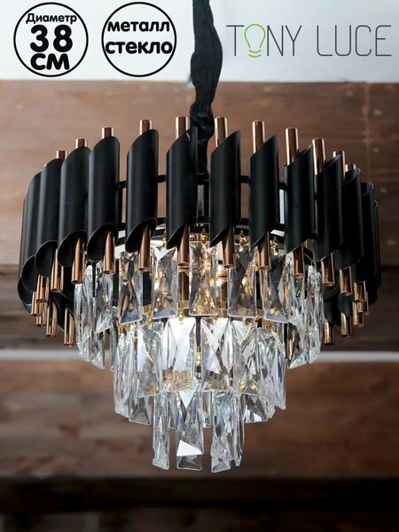 Откройте двери в мир изысканного света с нашей потолочной люстрой, которая преобразит ваше пространство, добавляя ему шарма и утончённости. Этот уникальный светильник на потолок, выполненный из граненого прозрачного стекла, создаёт иллюзию дорогостоящего хрусталя, придавая каждой комнате ощущение роскоши и эксклюзивности. Каждая деталь этой подвесной люстры была тщательно продумана для сочетания функциональности и стиля. С металлическим основанием, окрашенным в элегантный черный цвет, и круглой формой диаметром всего 38 см, она идеально впишется в любой интерьер от классики до лофта. Если использовать светодиодные LED (лед) лампочки с цоколем Е14, светильник на подвесах обеспечивает яркое и одновременно экономичное освещение. И, конечно же, особенностью модели является возможность регулировки высоты до 78 см, что позволяет адаптировать освещение под любой запрос и интерьер. Наша регулирующаяся стеклянная люстра станет идеальным выбором не только для освещения спальни, гостиной, кабинета или прихожей, но и добавит изысканности в коридор, кухню или зал. Современный дизайн, высочайшее качество материалов и универсальность использования делают её незаменимым элементом в доме, где ценятся красота и функциональность. Создайте уют и уютную атмосферу с нашей люстрой, и пусть каждый момент в вашем доме становится особенным.