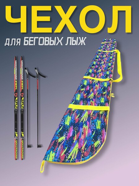 Чехол для переноски и хранения беговых лыж AKYLA. От Российского производителя. Изготовлен из прочного плотного материала с водоотталкивающей пропиткой. Удобная распашная молния позволит легко и быстро доставать и укладывать лыжи в чехол. Справится даже первоклашка . Две удобные ручки для переноски. Две стяжки для надежного крепления лыж внутри чехла. (В зависимости от крепления на лыжах, в чехол вмещаются 1-2 пары комплектов лыж с палками). Яркий и стильный принт не позволит перепутать свой чехол с другими. Чехол для лыж необходим каждому школьнику и спортсмену. Чехол защитит инвентарь от выцветания и сколов при хранении, а так же удобен в использовании по дороге на тренировку. Ширина чехла 22 см.