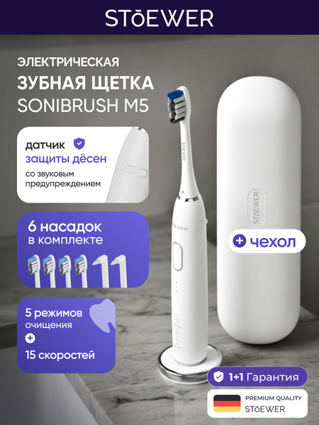 Представьте электрическую зубную щетку, которая понимает, что нужно именно вашим зубам и деснам сегодня. Stoewer SoniBrush M5 — это звуковая щетка нового поколения, которая объединяет мощность современных технологий и заботу о здоровье полости рта каждого члена семьи. Ваш персональный стоматолог в руках: 5 уникальных режимов (ежедневная чистка, уход за деснами, отбеливание, полировка, интенсивное очищение) и 3 уровня интенсивности в каждом. Это 15 вариантов настройки! Чувствительные десны? Выбирайте бережный режим. Хотите сияющую улыбку? Включите отбеливание. Это уход, который подстраивается под вас, а не наоборот. Умная защита и идеальная техника чистки: Датчик давления — ваш сторожевой для эмали и десен. Щетка мягко вибрирует и подаст световой сигнал, если вы надавите слишком сильно, предотвращая стирание эмали и травмы. Встроенный таймер — гарантия идеальной чистки. Щетка сама отсчитает рекомендованные 2 минуты и мягко напомнит каждые 30 секунд о смене зоны. Больше никакой спешки или недобора по времени. Продумано до мелочей для вашего комфорта: 100 дней свободы от розетки. Зарядили один раз — и забыли на несколько месяцев. Идеально для дома и абсолютно незаменимо в путешествиях. Водонепроницаемость IPX8. Смело мойте щетку под струей воды — ей это не страшно. Система контроля гигиены «2 в 1». Умный индикатор через 3 месяца использования миганием напомнит, что пора сменить насадку. Цветные индикаторные щетинки (только в классических насадках) постепенно светлеют, наглядно показывая степень износа. Меняйте насадку вовремя, без догадок. Полный комплект для всей семьи В коробке вы найдете всё для начала идеального ухода: Сама щетка. 4 классические насадки (цвет соответствует цвету ручки). 2 монопучковые насадки для безупречной чистки труднодоступных мест и зубов мудрости. Удобный дорожный чехол. Зарядная станция. Важный бонус: Все насадки имеют разные символы. Каждый член семьи легко узнает свою — гигиена становится персональной даже при совместном использовании устройства. Stoewer SoniBrush M5 — это инвестиция в здоровье, безупречную чистоту и ежедневный комфорт. Позаботьтесь о своей улыбке на профессиональном уровне.