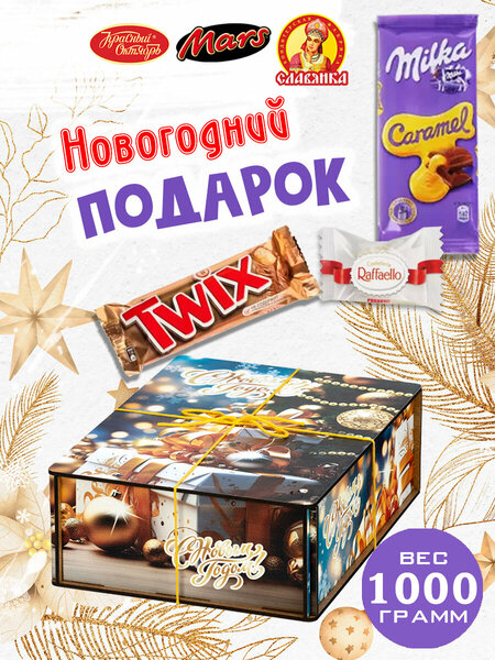 Универсальный подарочный набор, который придется по душе сластене абсолютно любого возраста. Подарочная упаковка выполнена в виде небольшого деревянного ящичка, перевязанного желтой веревочкой. Ящичек со всех сторон украшен яркими иллюстрациями с узнаваемыми новогодними символами: елочными шариками, гирляндами и подарками. Помимо привлекательной упаковки, этот набор может порадовать разнообразным наполнением - в его состав входят сладости на любой вкус - шоколадные конфеты с различными начинками, суфле, халва и многие другие вкусные лакомства, с которыми любое чаепитие станет настоящим праздничным торжеством!