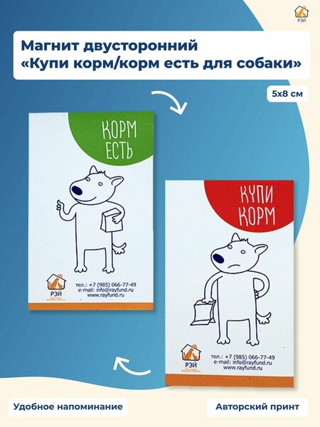 Магнит двусторонний "Корм есть/купи корм для собаки" - фонд РЭЙ