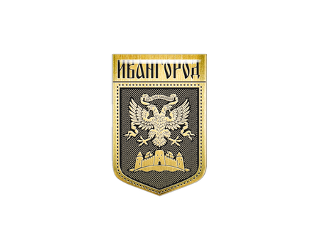 Герб Ивангорода: "В лазоревом поле черный двуглавый орел с золотыми клювами и лапами, держащий в клювах серебряную ленту с надписью черными литерами: "царь иоаннъ васильевичъ". Внизу на зеленой земле с серебряной волнистой оконечностью три серебряные башни без зубцов, из которых средняя выше, а две боковые имеют червленые остроконечные кровли; башни соединены серебряными зубчатыми стенами, из-за которых видны два шпиля (по сторонам от средней башни) и два дома (по сторонам от шпилей) с серебряными стенами и червлеными кровлями". Современный герб Ивангорода утвержден Решением Городского собрания МО "Город Ивангород" №13 от 26 июня 1998 года. Обоснование символики: "Современный герб полностью соответствует гербу разработанному и утвержденному в 1730 г. Волны в оконечности щита означали пограничную р. Нарову, серебряная с красными кровлями крепость на зеленом холме напоминала о крепости, с которой начался Ивангород и которая сохраняла военное значение до второй половины XVIII в. Над крепостью был помещен двуглавый орел государственного герба России, данный в том виде, в каком он употреблялся во времена Ивана III Васильевича - основателя города, даровавшего ему свое имя: без корон, скипетра и державы в лапах и малого щита на груди.". Ивангород расположен в Ленинградской области на восточном берегу реки Нарвы, в 159 км к западу от Санкт-Петербурга. Своe имя город получил от названия древней крепости, построенной в 1492 году. "Повелением великого князя Ивана Васильевича заложиша град на немецком рубеже против Ругодива немецкого на реке Нарове на Девичьи горе" - так говорится о Ивангороде в древней летописи. В тревожное для Руси время эта крепость служила щитом русских земель, на протяжении более двух столетий являясь мощным форпостом на ее западной границе. Основная достопримечательность города - крепость, которая и сейчас поражает своей монументальностью и мощью. Она расположена на крутых склонах Девичьей горы, месте труднодоступном и живописном. Гора с трех сторон омывается быстрой Нарвой, а с четвертой - окружена глубоким оврагом. Эта крепость достраивалась и расширялась с XV по XVII век и представляет собой сложный комплекс оборонительных сооружений.