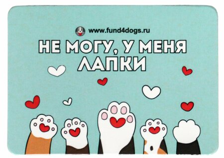 Магнитик с рисунком "Не могу, у меня лапки" станет хорошим украшением на холодильник или рабочее место. Также может стать отличным подарком с доброй историей для родных и близких. Средства от продажи поступают в фонд "Собаки, которые любят" и будут использованы в благотворительных целях на лечение, содержание и питание бездомных животных. «Собаки, которые любят» – некоммерческая организация, которая оказывает системную поддержку животным в муниципальных и частных приютах, помогает бездомным собакам и кошкам и популяризирует гуманное отношение к животным.