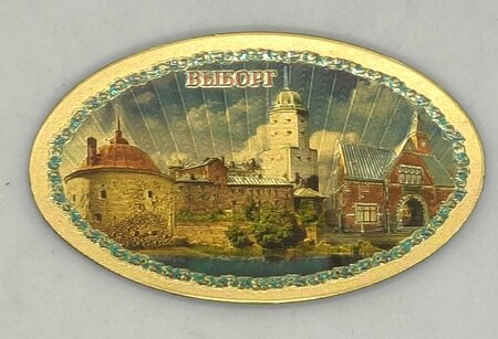 Магнит "Выборг" овальный, тисненая фольга - стильный и недорогой сувенир, который станет отличным подарком для вас и ваших близких. Этот магнит выполнен из металла и винила, что обеспечивает его долговечность и прочность. Тематика магнита посвящена городам и достопримечательностям, в частности, городу Выборг. На нем изображены основные достопримечательности этого средневекового города, что делает его уникальным и запоминающимся. Форма магнита овальная, что придает ему оригинальность и делает его удобным для размещения на холодильнике или другой металлической поверхности. Размеры магнита составляют 7,5 см в длину и 4,5 см в ширину, а его вес равен 19 г. Магнит "Выборг" овальный, тисненая фольга станет отличным выбором для тех, кто хочет сохранить воспоминания о посещении этого прекрасного города и подарить его близким.