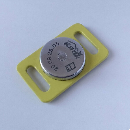 Магнитный держатель инструмента «Часики» – съёмный магнитный подвес для временной фиксации вашего "железа" (молотков или другого инструмента) на ременных привязях, развесках или лямках рюкзаков при работе на высоте, на скалах и в пещерах. Магнитный держатель инструмента «Часики» изготовлен в виде прямоугольной пряжки с щелями под ленту шириной 20мм. По центру пряжки в специальном углублении установлен неодимовый магнит со сквозным отверстием. Сам магнит закрыт круглой крышечкой на сквозной заклёпке. Крышечка не позволит даже лопнувшему магниту (а неодимовые магниты довольно хрупкие) высыпаться из своего гнезда. Исполнение держателя – алюминиево-магниевый сплав, не препятствующий распространению магнитного поля магнита, а значит и не ослабляющий его. Стальной инструмент надежно «прилипает» к держателю. Магнитный держатель инструмента «Часики» удобно размещается, к примеру, на развесе для снаряжения «Соло» – очень лёгкой регулируемой по длине и объёму ленточной петле на мягком наплечном подкладе для ношения снаряжения при горовосхождениях. Технические характеристики: