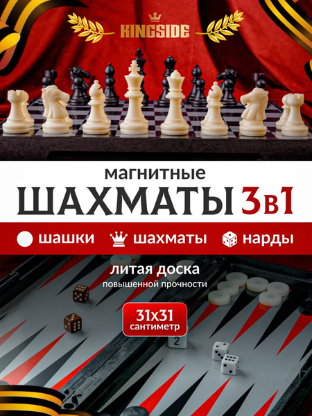 Шахматы, шашки, нарды KINGSIDE 3в1 - это дорожный набор, который включает в себя три популярные настольные игры: шахматы, шашки и нарды. Изготовлен из качественного пластика, металла и бархата, он обеспечивает долговечность и удобство использования. Магнитные элементы позволяют легко устанавливать фигуры на игровое поле, делая игру более удобной и интересной. Складная конструкция с внутренним пространством позволяет легко транспортировать игру и хранить фигуры. Шахматы и шашки развивают усидчивость, концентрацию, логику и мышление, что делает их отличным подарком для детей и взрослых на день рождения или новый год. Рекомендуемый возраст для игры - от 6 лет. Набор 3 в 1 включает в себя игры: шахматы, нарды и шашки, что делает его отличным выбором для любителей настольных игр. Шахматы, шашки, нарды KINGSIDE 3в1 - это отличный выбор для тех, кто ценит качество, удобство и разнообразие в одном наборе.