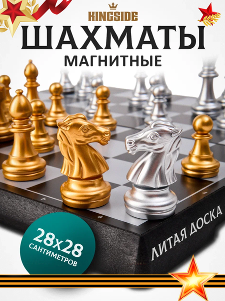 Шахматы KINGSIDE - это классический шахматный набор золотистого и серебристого цвета, который станет отличным выбором как для начинающих, так и для профессиональных гроссмейстеров. Размер доски составляет 28 х 28, что делает шахматы удобными для игры вдвоем. Доска изготовлена из дерева и имеет складную конструкцию, что облегчает транспортировку и хранение. Фигурки выполнены из металла и пластика, что обеспечивает их долговечность и устойчивость к деформациям. Матовые фигурки с магнитами приятны на ощупь и тактильно. Шахматы KINGSIDE соответствуют стандартам шахматного оборудования (фиде), что гарантирует их высокое качество и надежность. Шахматы упакованы в подарочную коробку, что делает их отличным подарком на день рождения, юбилей или любой другой праздник. Играйте в шахматы KINGSIDE и развивайте стратегическое мышление, логику и усидчивость.