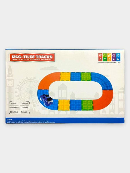 Магнитный Трек Art. 6001 — компактный и развивающий набор для детей, позволяющий собирать замкнутый разноцветный трек и запускать по нему машинку. Яркие полупрозрачные магнитные плитки и элементы трека быстро соединяются между собой благодаря магнитным фиксаторам, что исключает необходимость винтов и инструментов и делает сборку простой и безопасной. Набор предназначен для занятий дома, в поездке или в группе детей, он удобен для хранения и транспорта. Игра развивает мелкую моторику, координацию рук и глаз, пространственное мышление, внимание и логическое планирование. STEAM-подход набора позволяет в игровой форме познакомить ребёнка с основами механики и причинно-следственных связей: дети экспериментируют с формой трека, наблюдают за движением машинки и учатся предсказывать результат изменений. В комплект входят прямые и изогнутые секции, закруглённые поворотные элементы, магнитные соединители и одна лёгкая машинка, адаптированная для движения по магнитной дороге. Материал изготовления — прочный ABS-пластик с встроенными магнитами. Важно: набор содержит мелкие магниты, которые представляют опасность при проглатывании; не предназначен для детей младше 3 лет, рекомендуется играть под присмотром взрослых. При подозрении на проглатывание магнита необходима немедленная медицинская помощь. Рекомендуется собирать трек на ровной поверхности и проверять фиксацию всех элементов перед запуском машинки. Размеры набора 35 × 22 × 5 см, вес около 0.65 кг — это делает его компактным и удобным для переноски. Цветовая гамма набора включает синий, оранжевый, жёлтый и зелёный, полупрозрачный пластик придаёт визуальную привлекательность и сенсорную стимуляцию. Игра подходит как для индивидуального творчества, так и для совместных занятий, развивает навыки общения, планирования и совместной работы. Набор хорошо подходит в качестве подарка: он сочетает развивающие элементы и простоту использования, побуждает ребёнка к самостоятельному созданию новых конфигураций трека и к экспериментированию. Магнитный Трек поддерживает естественное любопытство ребёнка и помогает превращать каждую игровую сессию в обучение через практику и наблюдение. || Магнитли Трек Art. 6001 — болалар учун мосланган компакт ва ривожлантирувчи тплам блиб, рангли ёрим шаффоф магнит плиталар ва трек элементлари орали ёпи айлана йлни тузиш ва унда машина ишга тушириш имконини беради. Магнитли туташтиргичлар шарофати билан иса ват ичида тузилган ва винт ёки асбоб талаб илмасдан йиилади, бу болаларга мустаил равишда ижро этишни осонлаштиради. Тплам уйда, саёҳатда ёки болалар гуруҳи билан йинлар учун улай, салаш ва ташишда енгил. Ўйин кичик моторика, л ва кз мувозанати, макон ҳисси ва мантиий режалаштиришни ривожлантиради. STEAM ёндашуви болани механика асослари ва сабаб-оибат алоалар билан йин орали таништиради: болалар трек шаклини синашади, машина ҳаракатини кузатади ва згаришларнинг натижаларини тахмин иладилар. Тпламга три ва эгри сегментлар, бурилиш элеменлари, магнитли бириктиргичлар ва магнит йлида ҳаракатланишга мос бир енгил машина киради. Махсулот ABS-пластикдан тайёрланган ва ичига магнитлар рнатилган. Диqqat: тплам кичик магнитларни з ичига олади ва уларни йткилиш хавфи мавжуд; 3 ёшдан кичик болаларга мос эмас, катта назорат трисида тавсия илинади. Магнитларн