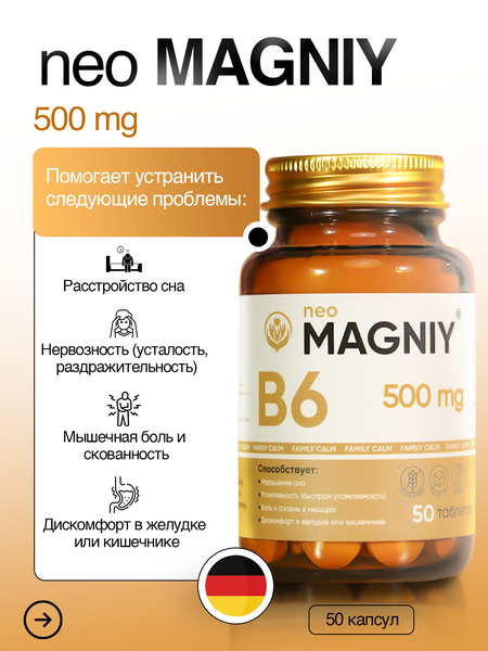 Магний участвует в передаче нервных импульсов, снижает тревожность, раздражительность и эмоциональное напряжение. Витамин B6 усиливает действие магния и улучшает работу нейромедиаторов, регулирующих настроение и сон. Комплекс помогает расслабиться, улучшает качество отдыха и способствует гармонизации эмоционального состояния.