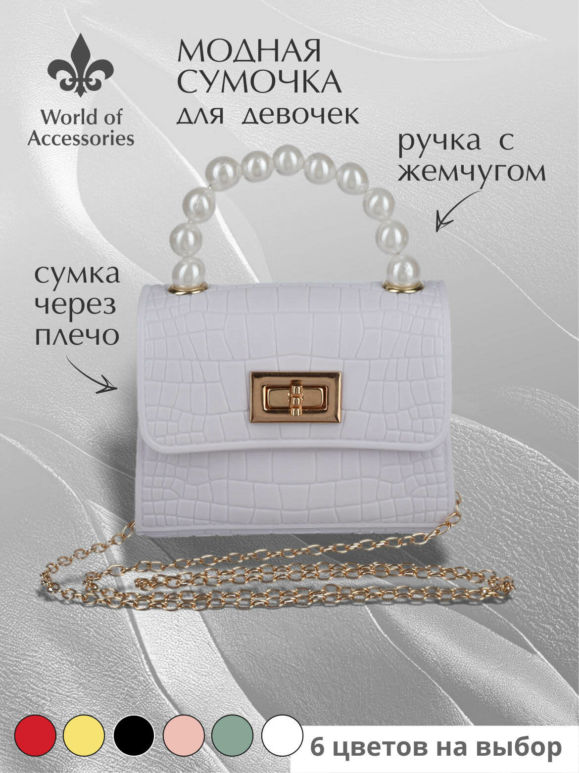 Маленькая сумочка для девочки - это не только модный аксессуар, но и удобный помощник в повседневных делах. Эта сумка через плечо притягивает взгляды своим стильным дизайном неповторимыми деталями. У этой мини сумочки есть все, чтобы стать любимым аксессуаром девочки. Изысканный фасон и превосходное качество материалов делают ее непревзойденной. Ручка из жемчуга придает еще больше шарма этой сумочке, а также обеспечивает надежность и удобство в использовании. Внутри сумочки девочка найдет достаточно места для своих сокровищ. Благодаря надежному поворотному замку, ничто не потеряется и не разлетится. Компактный размер и легкий вес этой сумочки позволяют девочке взять ее с собой повсюду. Будь то прогулка в парке, поход в магазин или посещение друзей, эта сумочка будет незаменимой спутницей вашей малышки. Она поможет девочке оставаться стильной и модной в любой ситуации. Сумочка для девочки белого цвета- это не просто аксессуар, это настоящий шедевр для маленькой модницы. Приобретите ее сегодня и подарите вашей дочке радость и удовольствие от каждого использования. Непременно она полюбится вашей маленькой принцессе и станет незаменимым аксессуаром ее гардероба.