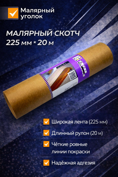 Малярный скотч 225мм*20м - это незаменимый помощник в малярных и отделочных работах. Он обеспечивает надежную защиту поверхностей от попадания краски, позволяя вам сосредоточиться на процессе создания качественного покрытия. Ширина ленты составляет 225 мм, что позволяет закрывать большие участки поверхности без лишних усилий. Это особенно удобно при работе с большими поверхностями, где важно предотвратить попадание краски на нежелательные участки. Малярный скотч легко наклеивается и снимается, не оставляя следов на поверхности. Это позволяет вам быстро и аккуратно менять границы покрытия, не тратя время на удаление остатков скотча. Лента обладает высокой стойкостью к влаге и температурам, что гарантирует ее долговечность и надежность в использовании. Это особенно важно при работе в условиях повышенной влажности или при необходимости использования скотча в разных температурных условиях. Выбирая малярный скотч 225мм*20м, вы получаете надежный и удобный инструмент для точной и аккуратной работы, который поможет вам создать качественное и эстетичное покрытие.