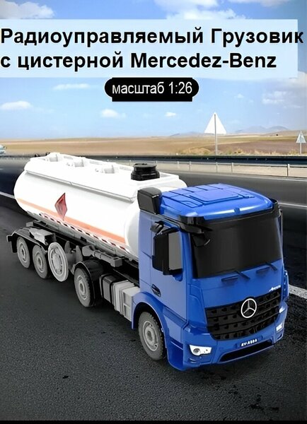 Радиоуправляемый тягач с цистерной Mercedez-Benz Arocs от Double Eagle в масштабе 1:26. Тягач движется во всех направлениях. При движении светятся фары. Цистерна присоединяется по принципу седельного тягача, её можно отсоединить и поставить отдельно. Складная конструкция опорной рамы корпуса резервуара делает его устойчивым без опрокидывания при отсоединении. В цистерну можно залить воду из бутылочки, которая идет в комплекте, и при помощи шланга и ручного напорного насоса, которые также входят в комплект, можно поливать водой из цистерны. Неограниченное количество часов увлекательной и интересной игры подарит эта игрушка вашему ребёнку. Характеристики: масштаб: 1/26 возраст: 6+ размер: 40,5 х 13 х 15,5 см Комплектация: тягач с цистерной Машина автоцистерна Mercedes Benz Arocs с дистанционным управлением - это увлекательная модель, в которой сочетаются кабина Arocs и модернизированный кузов автоцистерны. Кузов автоцистерны привносит несколько новых интересных функций в уже популярную автоцистерну Arocs с дистанционным управлением. Этот прочный игрушечный автоцистерна спроектирован так, чтобы выдерживать суровые условия игры, а функция дистанционного управления позволяет управлять грузовиком на расстоянии в режиме высокой или низкой скорости. Функции дистанционного управления включают управление светом и звуками. Для максимальной маневренности модель автоцистерны Arocs может выполнять повороты на 90 °, что позволяет ей быстро и легко менять направление. Съемный бак оснащен функциональными выпускными устройствами, которые облегчают парковку и наполнение бака. Для большего удовольствия грузовик оснащен водяным воздушным насосом с ручным управлением, который позволяет разбрызгивать воду по расширяющейся водопроводной трубе во всех направлениях.