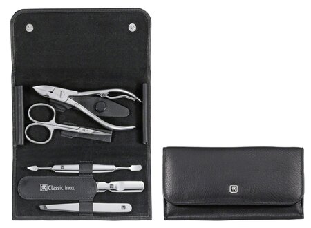 Classic INOX – это серия маникюрных инструментов бренда Zwilling, которую отличают благородная полировка и превосходное качество футляра из натуральной кожи. В коллекцию входят все необходимые приспособления для повседневной личной гигиены, способные превратить обычную процедуру ухода за руками или ногами в настоящий спа-сеанс на дому. Изделия из линейки Classic INOX изготовлены из высококачественной нержавеющей стали и имеют безупречно отполированную поверхность, а их запатентованный дизайн гарантирует аккуратную и безопасную обработку всех участков ногтей.
