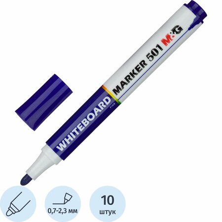 Маркер для белых досок M&G 2,3 мм синий Производитель: M&G Маркер для досок. Круглый наконечник. Пластиковый корпус. Круглый наконечник обеспечивает толщину линии от 0.7 до 2.3 мм. Цвет — синий. Чернила на спиртовой основе. Внимание! Маркеры для досок необходимо хранить в горизонтальном положении или фетром вниз.
