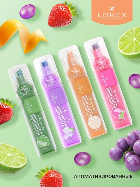 Текстовыделители с ароматом LOREX RICH FRUIT с вкусно пахнущими чернилами - это отличный выбор для любителей рисования маркерами. Текстовыделители пастельные помогут выделять самое важное в документах или просто тексте, и Вы сможете обработать и не забыть больше полезной информации. Прочный наконечник не западает в корпус и сохраняет форму на протяжении всего срока службы маркера. Скошенный пишущий узел позволяет наносить линии толщиной от 1 до 3,5 мм. Яркий дизайн порадует любителей милой канцелярии. Выделители текста обладают светостойкими чернилами. Почувствуй вкус фруктов круглый год вместе с текстмаркерами ароматизированными LOREX RICH FRUIT! Характеристики: чернила на водной основе, прозрачный корпус с ярким принтом, скошенный наконечник 3,5 мм. В серию вошли пастельные маркеры, ароматные цвета: фиолетовый - виноград, зеленый лайм, розовый - клубника, оранжевый - апельсин. Ароматизированные текстовыделители сделают работу или учебу интереснее! Набор маркеров текстовыделителей с запахом позволят подчеркивать разные типы информации разными цветами - для ценителей эстетичной канцелярии.