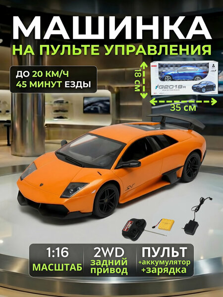 Лимонный, Манго цвета Детская машинка на пульте управления — яркая скоростная модель с эффектным спортивным дизайном, созданная для захватывающих и активных игр. Машинка выполнена в масштабе 1:16, благодаря чему выглядит реалистично и при этом удобна для управления как в помещении, так и на улице. Модель оснащена задним приводом 2WD, что обеспечивает стабильный ход и хорошую манёвренность. Машинка развивает скорость до 20 км/ч, а одного заряда аккумулятора хватает до 45 минут непрерывной езды, позволяя наслаждаться игрой без частых перерывов. Управление осуществляется с помощью пульта дистанционного управления с антенной, обеспечивающего уверенную связь на расстоянии. В комплект уже входят пульт, аккумулятор и зарядное устройство, поэтому машинка полностью готова к использованию после зарядки. Реалистичный внешний вид, быстрый разгон и высокое качество исполнения делают эту машинку отличным подарком для детей и прекрасным выбором для весёлого времяпрепровождения. Характеристики: Тип: машинка на пульте управления Масштаб: 1:16 Привод: 2WD (задний привод) Максимальная скорость: до 20 км/ч Время работы: до 45 минут Тип управления: дистанционный, пульт с антенной Питание: аккумулятор Комплектация: пульт, аккумулятор, зарядное устройство