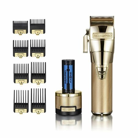 Babyliss Pro FXONE Gold Clipper — новая профессиональная машинка для стрижки с улучшенным цифровым двигателем, сменным аккумулятором и лезвием Fade Blade с системой непрерывной смазки. Предназначен для самых требовательных парикмахеров и парикмахеров. Создайте идеальные оттенки. Универсальная система зарядки благодаря новым сменным батареям с магнитным механизмом. Используйте один и тот же аккумулятор для всех машинок для стрижки Babyliss серии FXONE! Технические характеристики машинки для стрижки Babyliss Pro FXONE Gold: Модернизированный высокопроизводительный двигатель с цифровым управлением и двойными шарикоподшипниками для увеличения срока службы механизма. 6800 об/мин. Новое лезвие Gold Titanium Fade, более острое, точное и устойчивое к перегреву. Конструкция зубьев предназначена для удержания смазочного масла и обеспечения большей эффективности резания. Регулируется до нулевого зазора. Новый сменный аккумулятор FXONE с универсальной системой. Работает до 2,5 часов без кабеля. Быстрая зарядка с помощью зарядной базы или кабеля USB-C (зарядка на 80 % всего за 45 минут). Кнопка быстрой замены батареи. Светодиодный индикатор уровня заряда батареи. Рычаг регулировки длины стрижки с 5 положениями конуса: 0,5 – 1,4 – 2,3 – 3,2 – 4,2 мм. Съемная крышка головки с магнитной системой для легкой очистки механизма от остатков волос (мы рекомендуем регулярно чистить инструмент, чтобы двигатель работал эффективно). Не используйте машинку для стрижки без чехла. Зарядная база в комплектеВ комплект входят 8 усилителей премиум-класса: 0,5 – 1 – 1,5 – 2 – 3 – 4 – 5 – 6Комплект для регулярного обслуживания входит в комплект поставки. Цвет: Золото (золотистый).